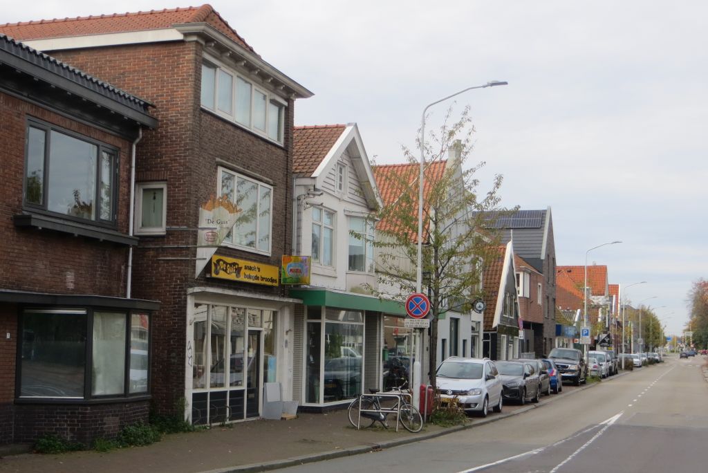 Aan de zuidkant van de straat stond en staat de meeste bebouwing die voornamelijk uit winkels en bedrijven bestond. De fotograaf van de oude foto stond ter hoogte van de Bredenhofstraat.