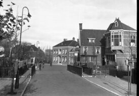Op de achtergrond zien we de oude spoorbrug, waarschijnlijk gebouwd in 1865 en vernieuwd in 1964. Van de Provinciale Weg is nog geen sprake, deze werd aangelegd tussen 1932 en 1934.