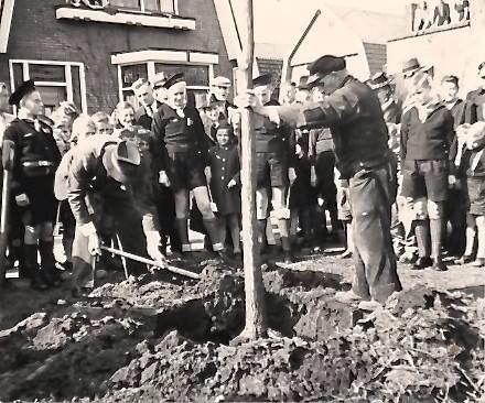 Tien jaar na de oorlog, in 1955, werd er in Krommenie door de Zeeverkenners op de hoek Weverstraat – Badhuislaan een boom geplant, en een plaquette naast de boom gelegd (bovenste foto).
