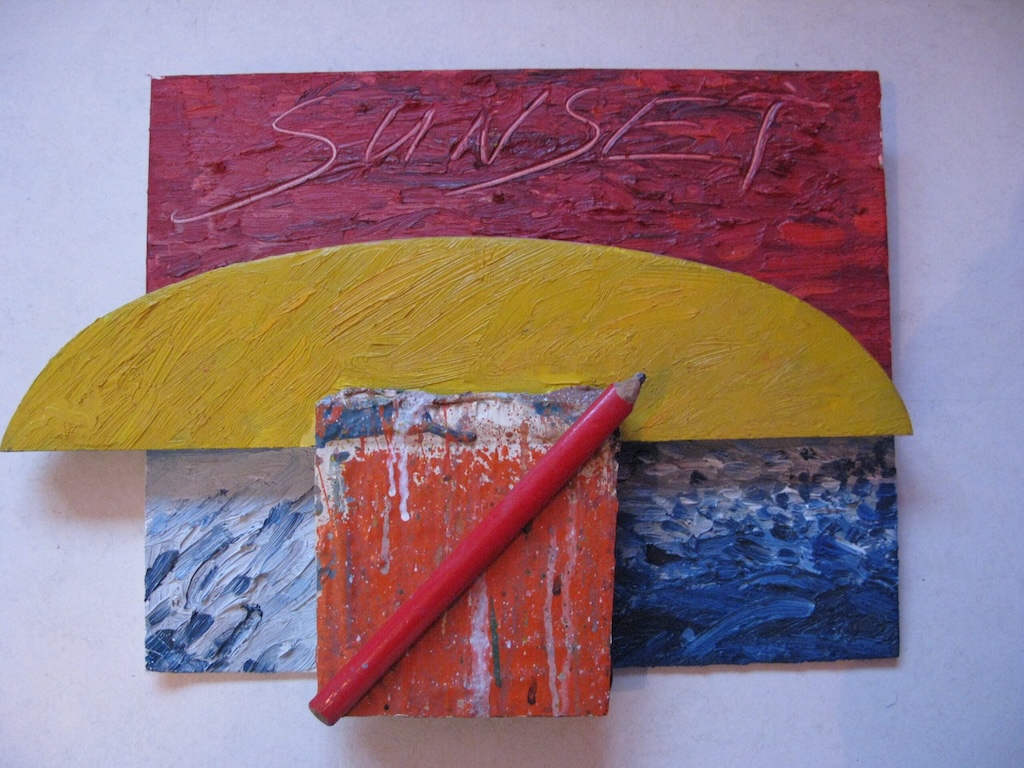 Door Piet Bakker op basis van websites Weefhuis, Gerard Mooy en Han Bennink. Boven: werk van Han Bennink (Sunset), onder van Gerard Mooy (schip vanaf de Overtoom).