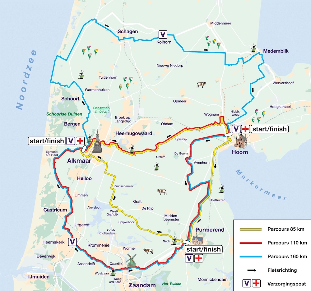 De inschrijving voor de Ronde die wordt georganiseerd door Le Champion is inmiddels geopend. De startplekken zijn Alkmaar, Hoorn en Purmerend. Deelnemers kiezen uit afstanden van 85, 110 of 160 kilometer.