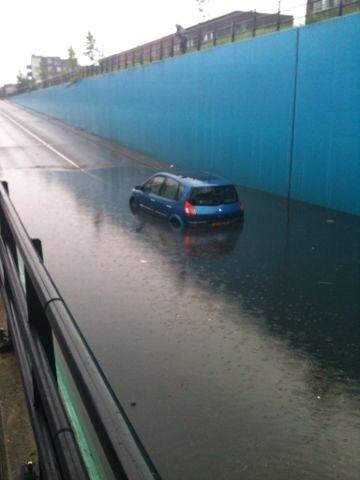 Op de foto van Ton Spaan (gepost op Twitter om 13:26) is vrij goed te zien waarom dat nodig was. Deze automobilist heeft het niet gered.
