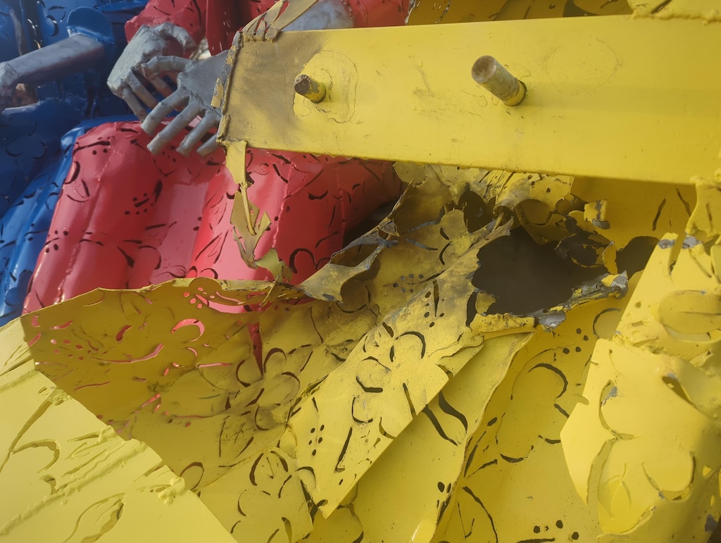 De drie menshoge vrouwelijke figuren staan symbool voor dialoog, uitwisseling van gedachten en het vieren van culturele trots die tijdens de slavernij werd onderdrukt. Juist die boodschap maakt de beschadiging extra schrijnend.