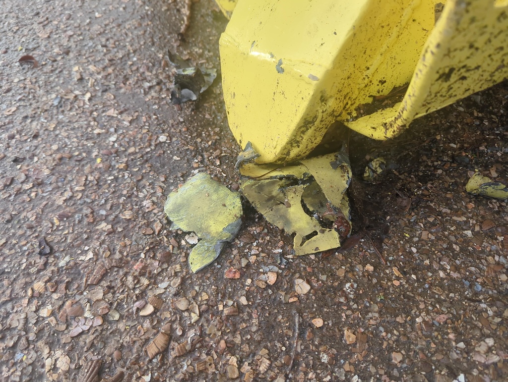 De schade werd opgemerkt door wandelaar Mark van der Hout, die De Orkaan mailde na een rondje langs de Gouw. Op foto’s is te zien dat het beeld, de vrouw in het gele gewaad, niet meer op haar plek zit, maar omver is geworpen. De positie waarin het beeld nu ligt is pijnlijk en wrang, zeker gezien de betekenis van het monument.