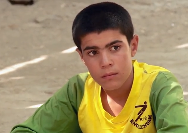 Op een YouTube-filmpje van de internationale vluchtelingenorganisatie UNHRC uit de Koerdische stad Dohuk (Noord-Irak) is een jonge vluchteling te zien die gekleed is in het geel-groen van voetbalclub Knollendam.
