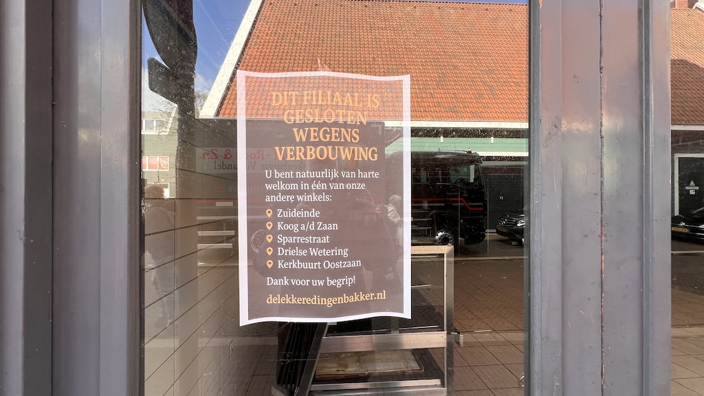 Weer een bakker minder in het centrum van Zaandam: de Lekkere Dingen Bakker aan de Rozengracht is dicht – ‘wegens verbouwing’.