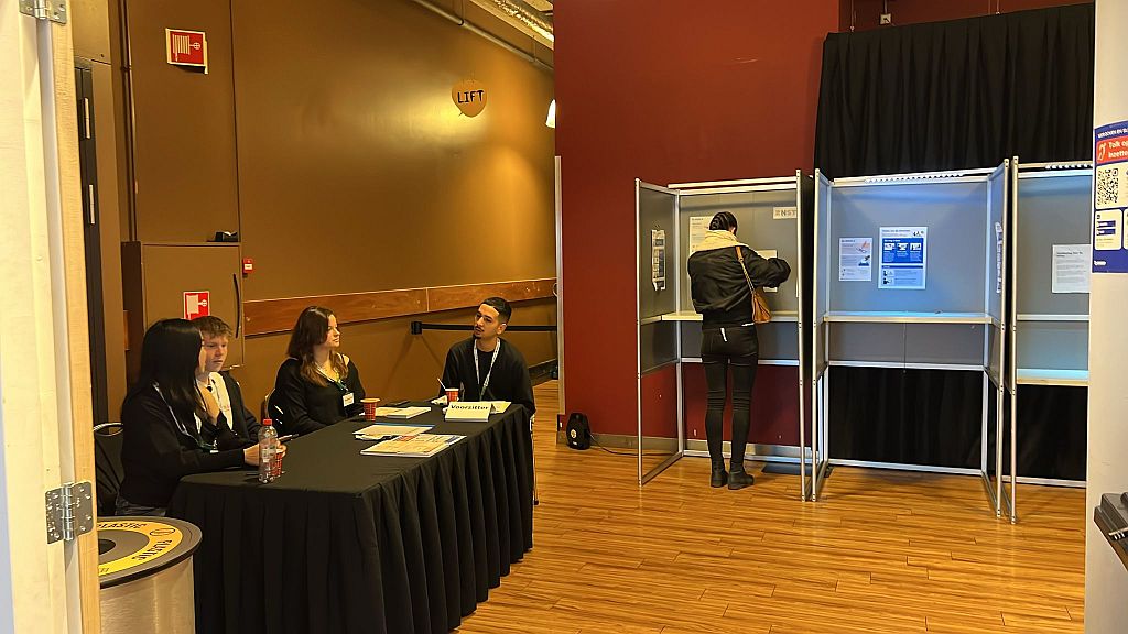 Pathé in Zaandam is veranderd in een stembureau speciaal voor jongeren. Al vroeg kwamen de eerste stemmers hun stem uitbrengen, zag Piet Bakker.