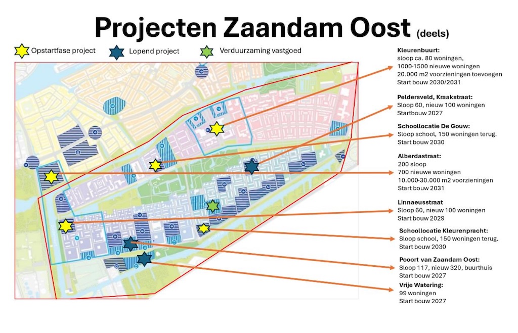 Daar zitten ook eerder aangekondigde plannen bij zoals Pooort van Zaandam-Oost (320 woningen), Kraakstraat (100 woningen) en Vrije Watering (99 woningen) waar al in 2027 moet worden gebouwd.