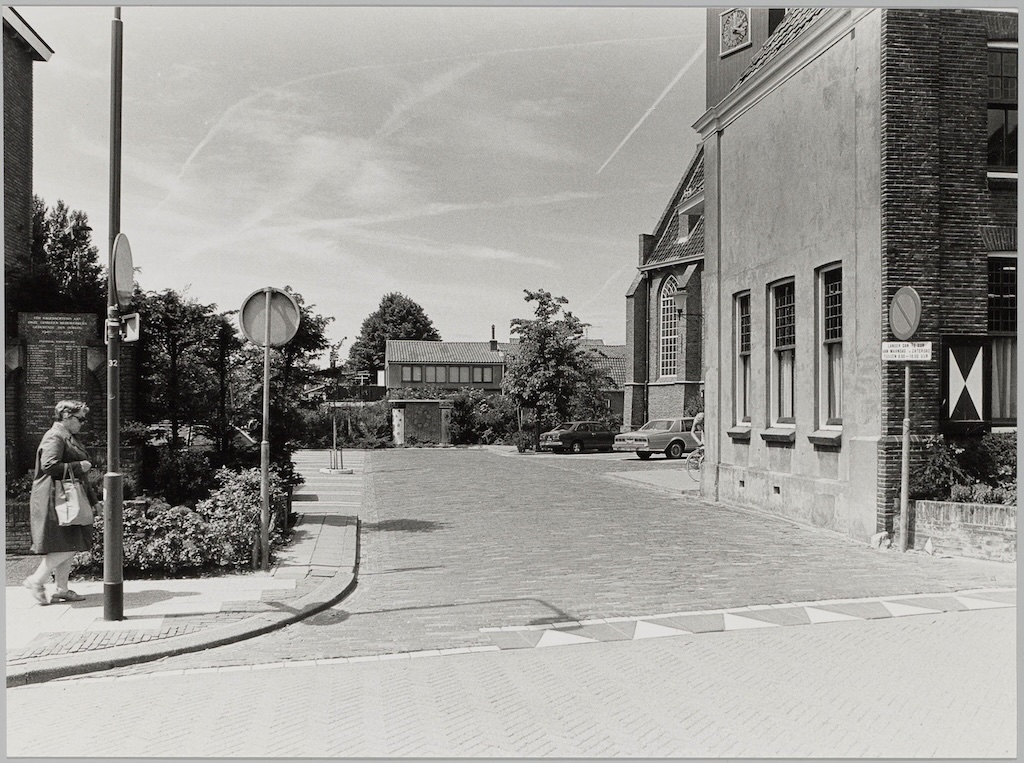 III. Eigen waarneming ter plaatse. Onze man (v) in Krommenie, Josefien Gigengack, stak het net opgeknapte kerkplein over om de zaak van nabij te bekijken en een recente foto te maken. Onder de kant vanaf Durgsloot richting Kerkplein, daaronder een blik vanaf het Kerkplein (net zoals op de Archief-foto).