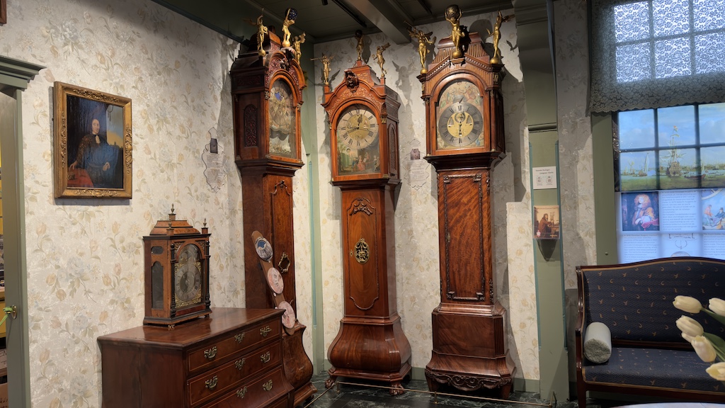 Tot de opvallende stukken behoren onder meer een wereldklok uit 1755, die de lokale tijd in verschillende steden toont, en klokken met bewegende elementen waarin Zaanse molens en maritieme taferelen terugkomen.