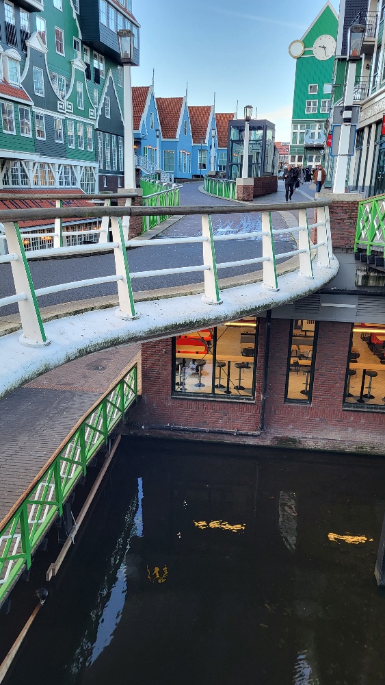 Wellicht is het contrast tussen de vrolijke groen-witte neo-Zaanse huisjes met daarvoor brugleuningen met een geheel eigen interpretatie van ‘Zaans Groen’ gewoon zo bedoeld?