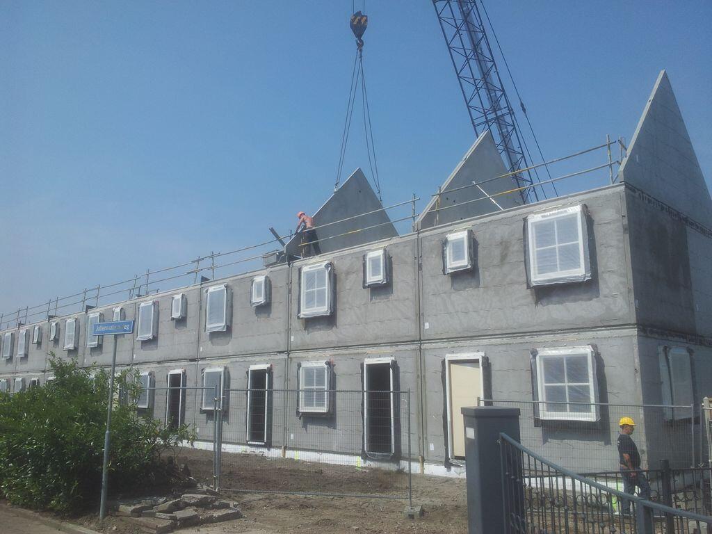 De eerste toppen gaan erop bij nieuwbouw-project in Oostzaan. Uitvoerder Sander van Echten van Giesberts Rotterdam maakte deze foto, met de hashtag #kleintwiske