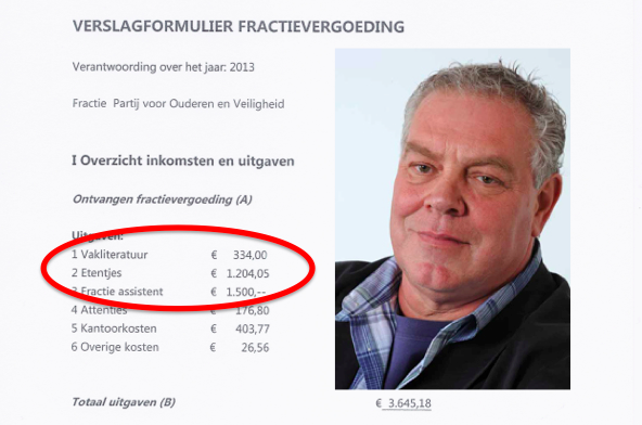 Die €1200,- (€1204,05 om precies te zijn) is precies wat POV’er Ton Brekelmans per jaar wegeet. En niet op eigen kosten maar op kosten van de belastingbetaler, op uw en mijn kosten dus.