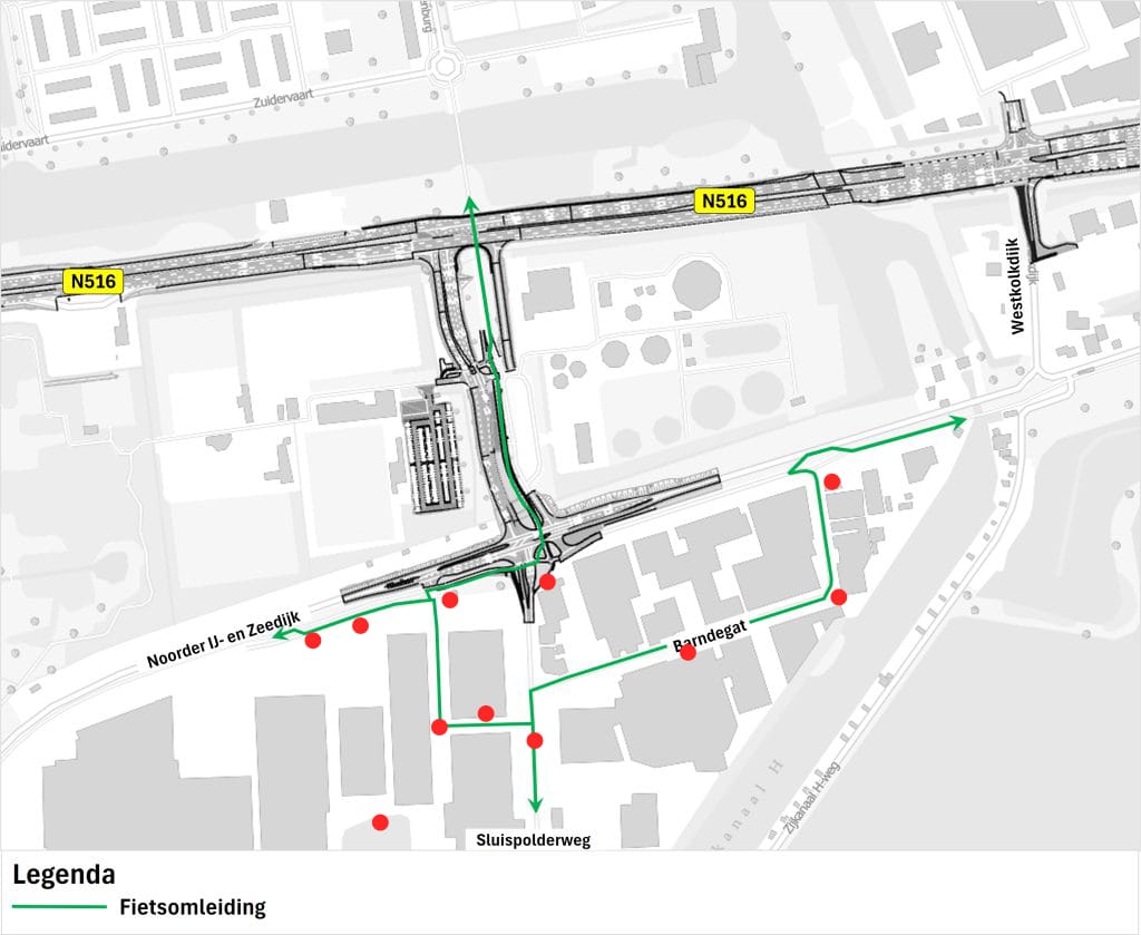 Neem Sjoerd Duiven, wiens twaalfjarige zoon elke dag op weg naar school in Amsterdam langs de omleiding moet fietsen. Hij beschrijft de situatie zoals die nu bestaat als beslist onveilig. ‘Een omleiding zou veilig genoeg moeten zijn voor fietsers. En helemaal voor middelbare scholieren uit Zaandam die in Amsterdam-Noord op school zitten.’