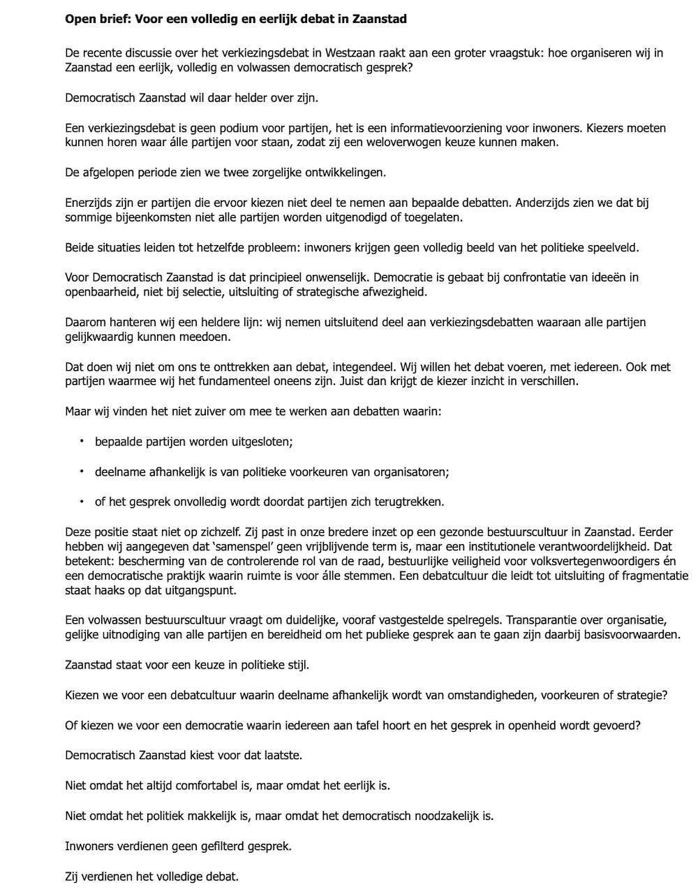 ā€˜Inwoners verdienen geen gefilterd gesprek. Zij verdienen het volledige debat.’