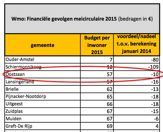 Oostzaan gekort op WMO-budget, op 2 na laagste in Nederland