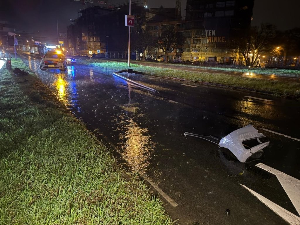 Op dat moment reed een bestuurster van een Volkswagen Golf richting de Dr. J.M. den Uylweg. Zij kon de omgevallen lantaarnpaal, die midden op de weg terecht was gekomen, niet meer ontwijken. Hierbij kwam zij vlak voor de verkeerslichten midden op de weg tot stilstand.