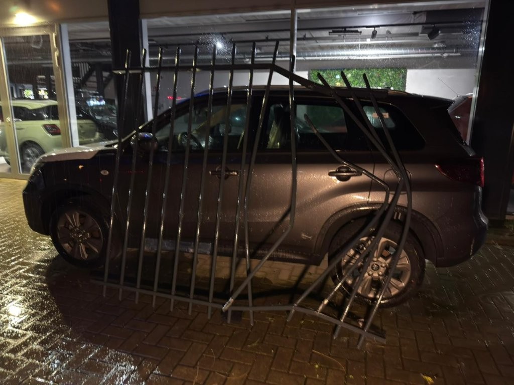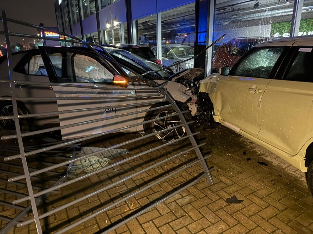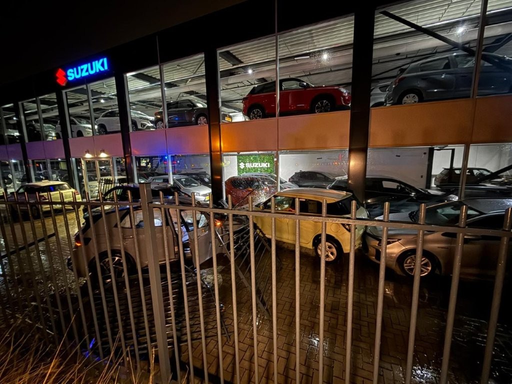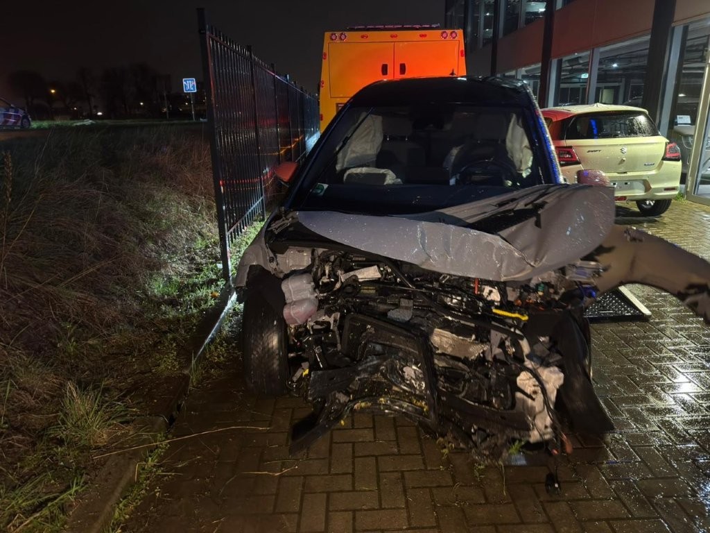 Een Volkswagen ID.3 is zondagavond – 15 maart – rond 22.20 uur dwars door het hek van autodealer Suzuki Jonker langs de Provincialeweg in Zaandam gereden. Daarbij werd een flinke ravage aangericht.