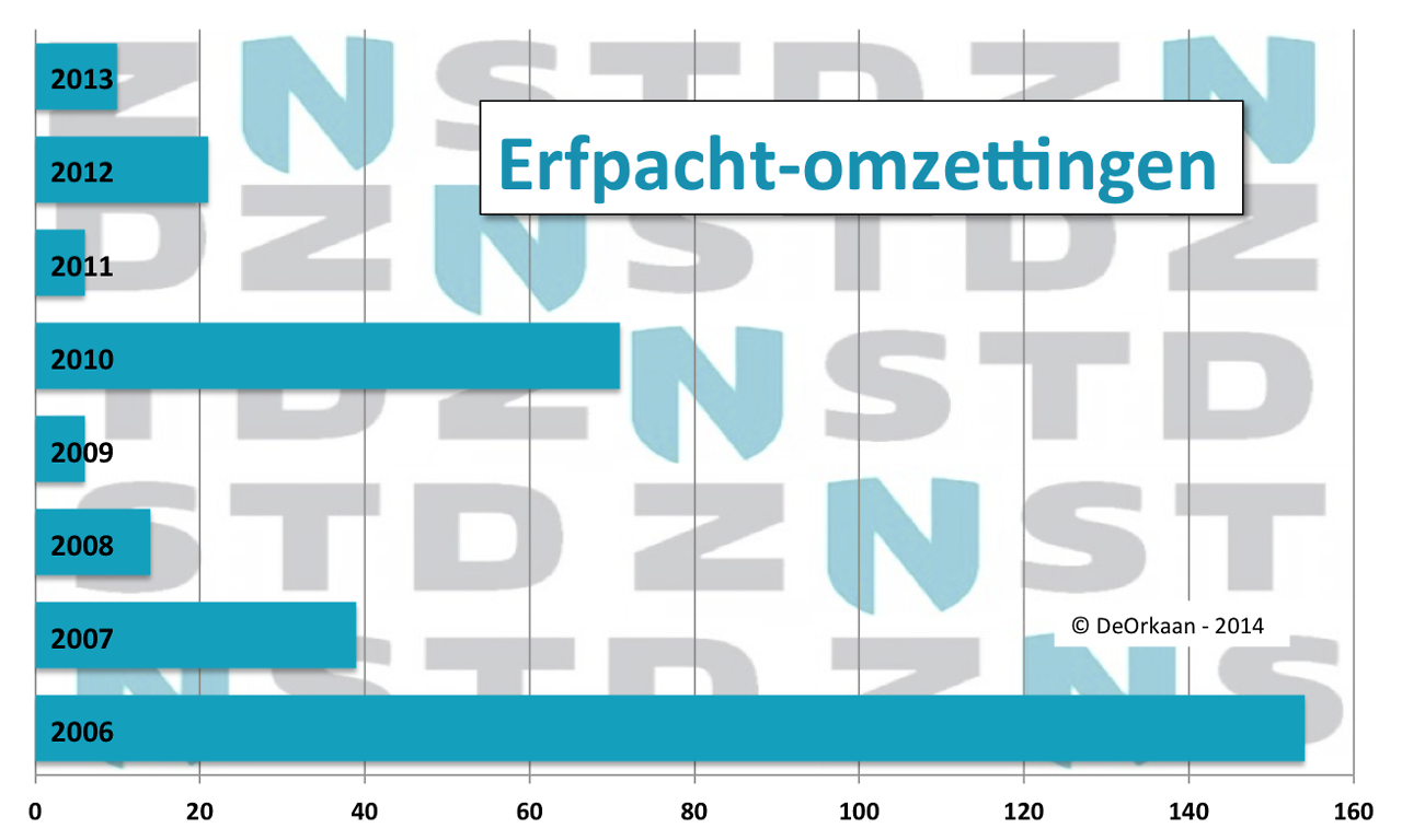 In 2006 kochten 154 inwoners van Zaanstad hun erfpacht af, dat waren veel meer dan in 2007 (39). Vanaf dat jaar kopen niet meer dan 20 mensen per jaar hun erfpacht af. Alleen in 2010 is door een eenmalige afkoop van een wooncorporatie het aantal hoger.