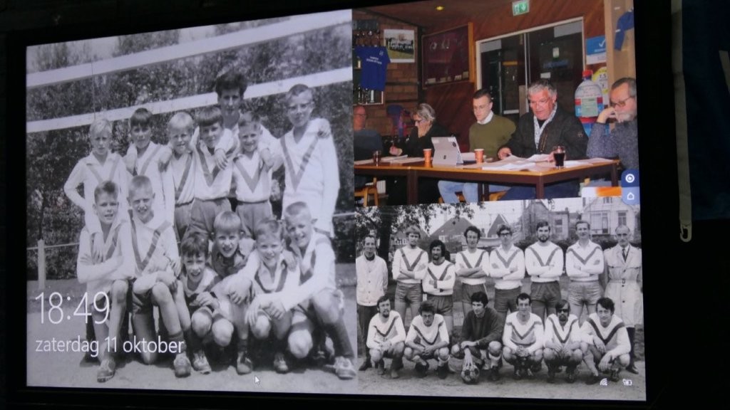 Op een groot scherm werden ondertussen nostalgische foto’s uit de rijke clubgeschiedenis vertoond. De beelden riepen ongetwijfeld veel herinneringen en verhalen op, terwijl de drank rijkelijk en met mate vloeide.