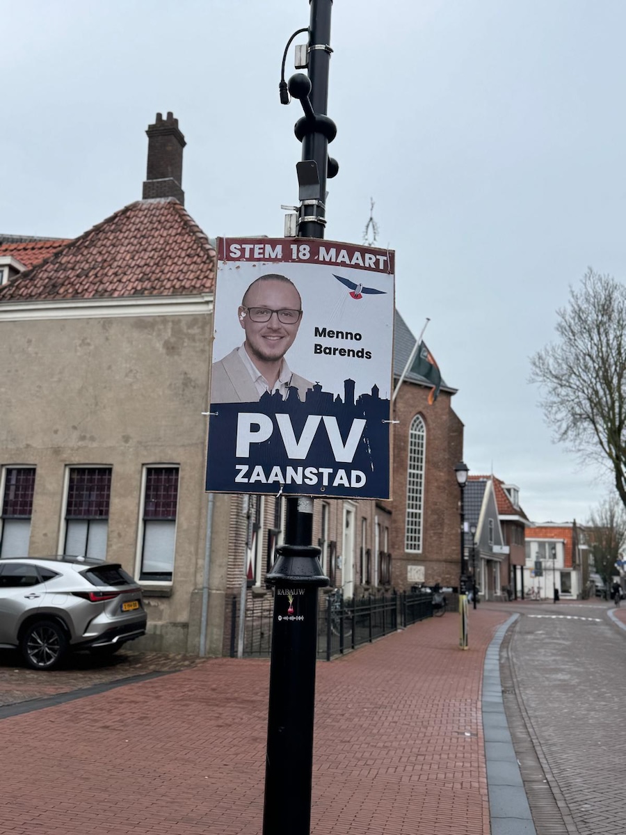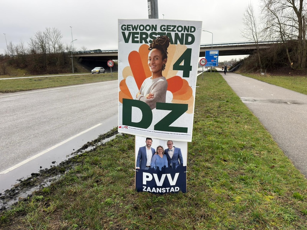 Uitingen van D66, PVV en POV verdwenen onder een laag DZ. Er werd daarbij niet gesloopt, maar wel onzichtbaar gemaakt. ‘Wie het eerst plakt, wie het laatst baalt’, luidt een oud Zaans spreekwoord dat we zojuist verzonnen.
