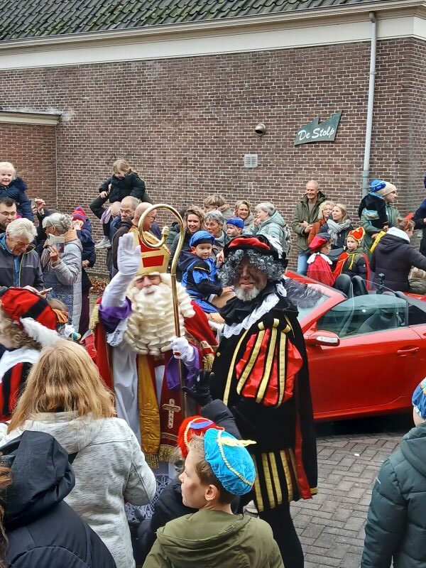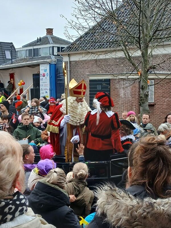 Daarna liep de stoet richting het centrum, waar de winkeliers en kinderen al stonden te wachten. Het werd een vrolijke, gezellige intocht, met dank aan de warme ontvangst voor Sinterklaas en zijn Pieten.