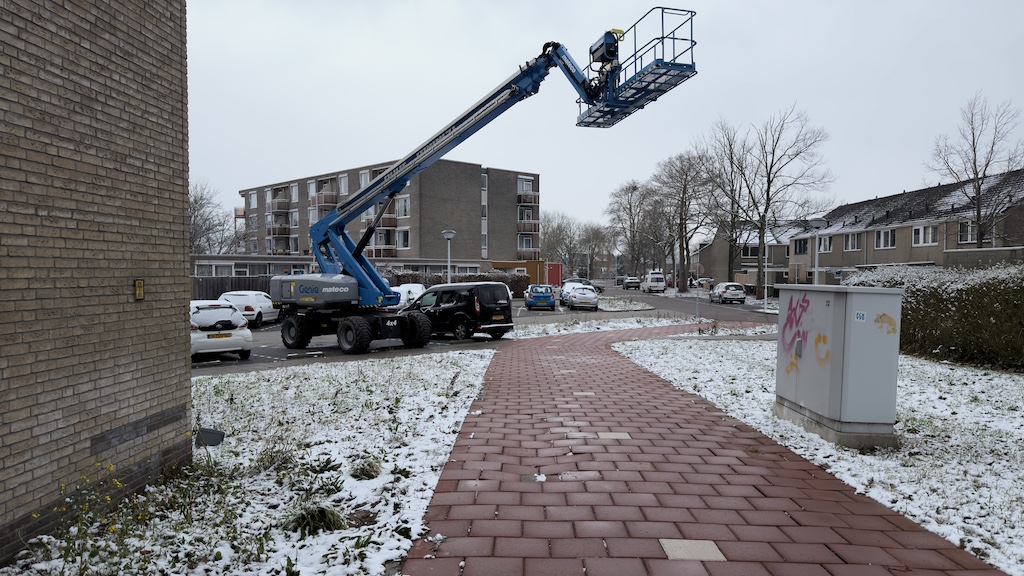 Voor het vervangen van de zonneschermen bij de woningen langs het fietspad is zwaar materiaal ingezet