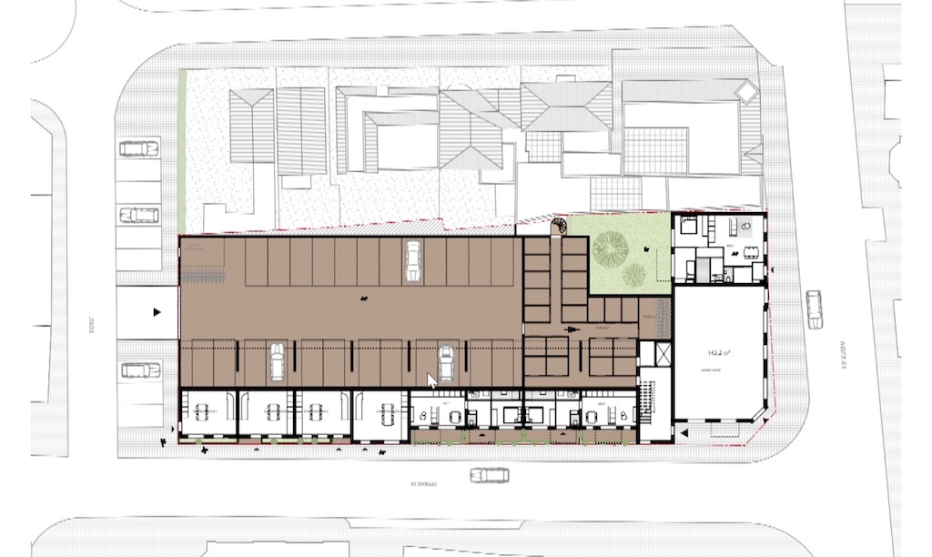 We hebben er de plattegrond bijgezet. 24 parkeerplaatsen op het terrein, 9 in de openbare ruimte achter het gebouw. Via de link naar Halmar zijn daar de gepresenteerde plannen te zien.
