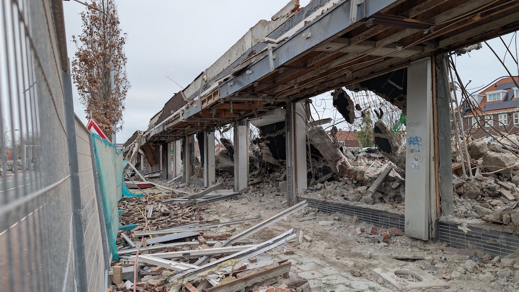 Blok 1 en 2 zijn al gesloopt en de sloop van blok 3 wordt vrijdag afgerond. Na de kerstvakantie wordt begonnen met het verleggen van kabels en leidingen door de verantwoordelijke nutsbedrijven.