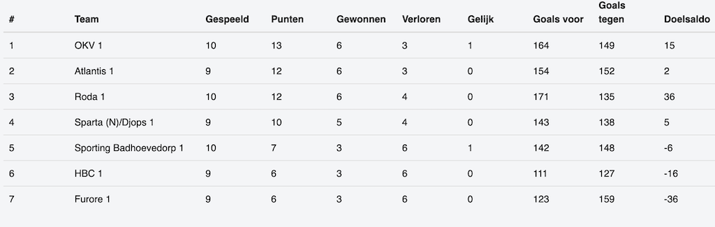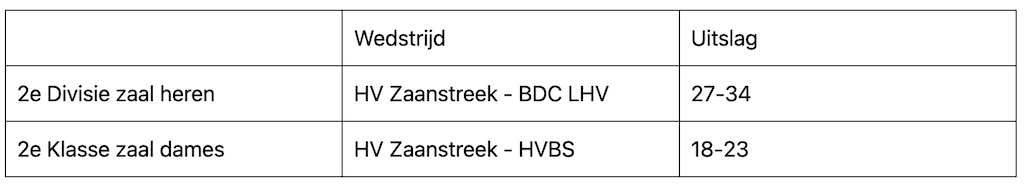 Twee thuiswedstrijden zonder afgeworpen vruchten voor HV Zaanstreek. De heren staan nu 8e in de 2e Divisie. De dames vinden we in de 2e Klasse terug op plek zes.