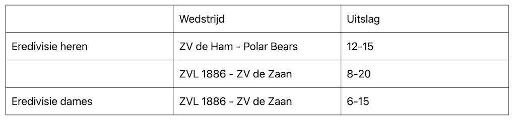 Ook zonder de gouden EK-speelsters Christina Hicks en Bente en Lieke Rogge had ZV de Zaan geen kind aan ZVL 1886 bij de dames. Ook de heren wonnen met groot verschil. De mannen van ZV de Zaan haalden het niet tegen de Polar Bears.