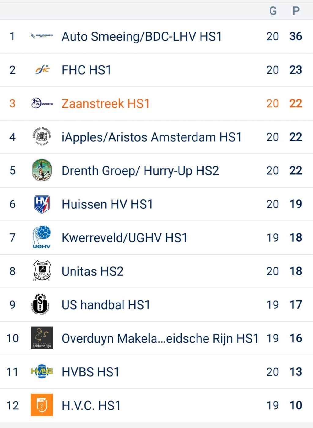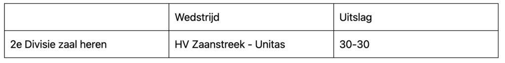 De heren hebben nog twee wedstrijden te gaan en speelden zaterdagavond thuis tegen Unitas. De zestig doelpunten werden gelijk verdeeld. Zaanstreek staat op een mooie 3e plaats in de ranking.
