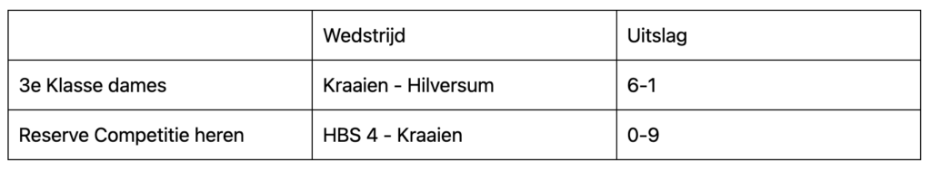 Toch kregen de dames veel corners tegen, waaruit ook het tegendoelpunt viel. Kraaien dames 1 staat 6e in de competitie.