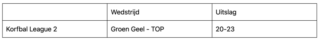 Alleen Groen Geel kwam zaterdag in actie en wist weer niet te winnen in de League 2. De ploeg uit Wormer speelt nergens meer voor dit seizoen, dat nog maar één speelronde te gaan heeft.