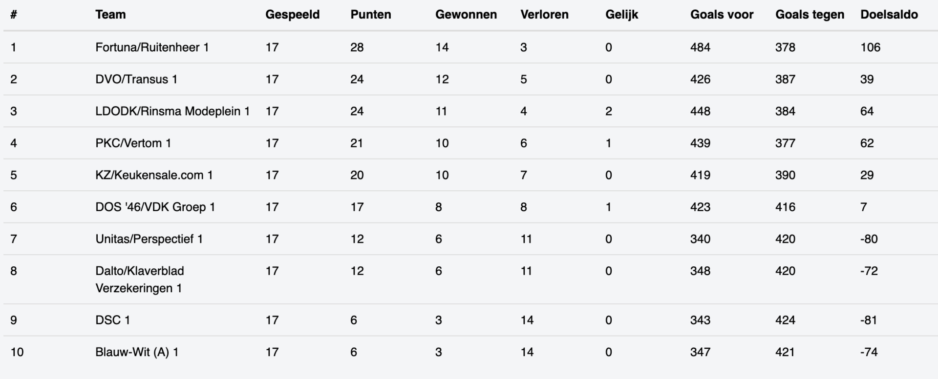 De mannen speelden in de Reserve Klasse en wonnen zeer doelpuntrijk. De stand is op het moment dat we dit bericht schrijven nog niet bijgewerkt maar dat zal vanzelf gebeuren.