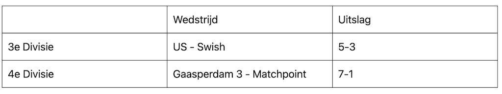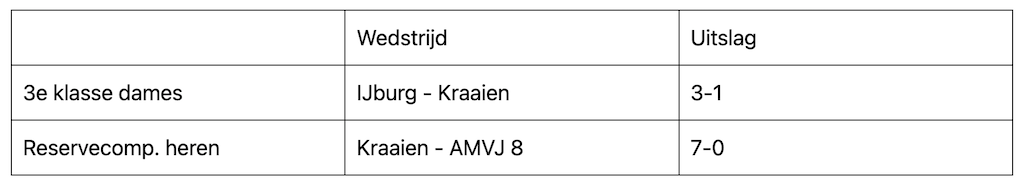 Dit zijn de sportuitslagen van het afgelopen weekend.