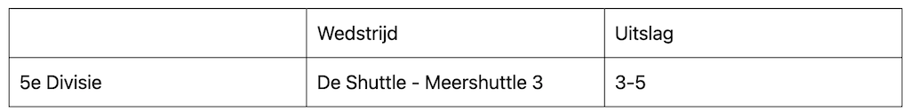 Ook De Shuttle uit Wormer wist niet te winnen. De bijna naamgenoten uit de Haarlemmermeer gingen met de punten naar huis.