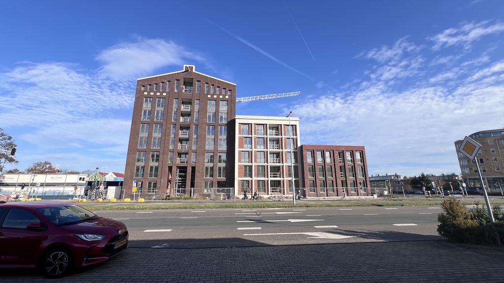 De steigers zijn weg bij De Kroon, de nieuwbouw op de plek van het voormalige NBM/BAM kantoor aan de Provincialeweg in Zaandam.