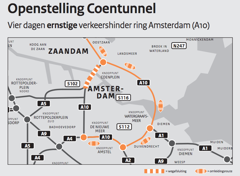 Van 16 tot 21 juli: Coentunnel & Piet Heintunnel dicht, geen extra ponten