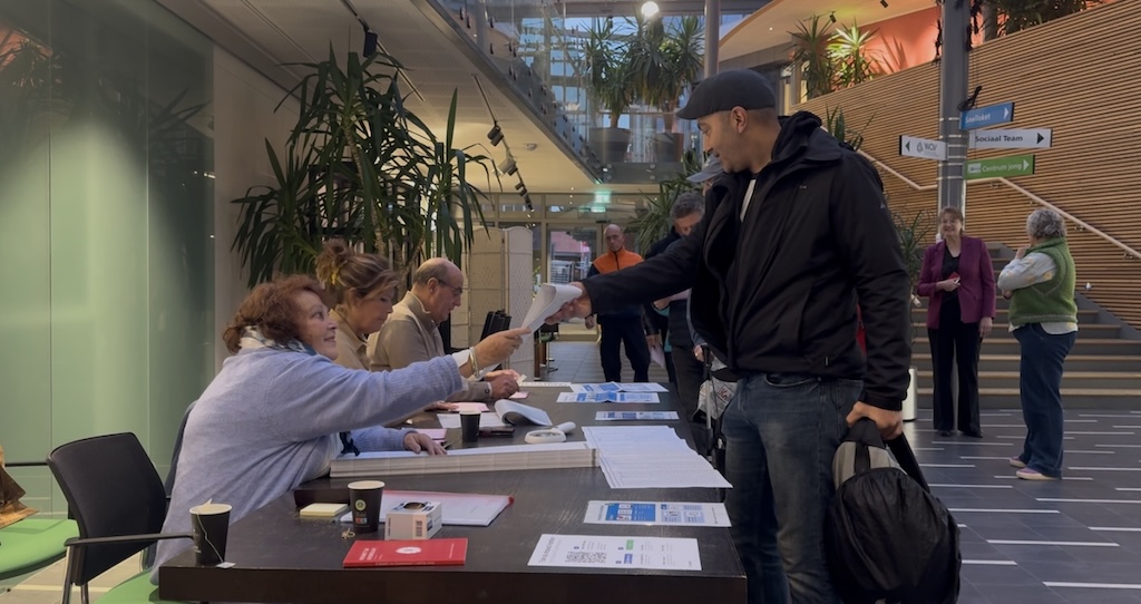 Vandaag bepalen we samen de koers van het land met één rood potloodje. In Oostzaan liggen die potloden trouwens aan de ketting. Dit zagen we toen we de vroege vogels filmden die hun stem al uitbrachten:
