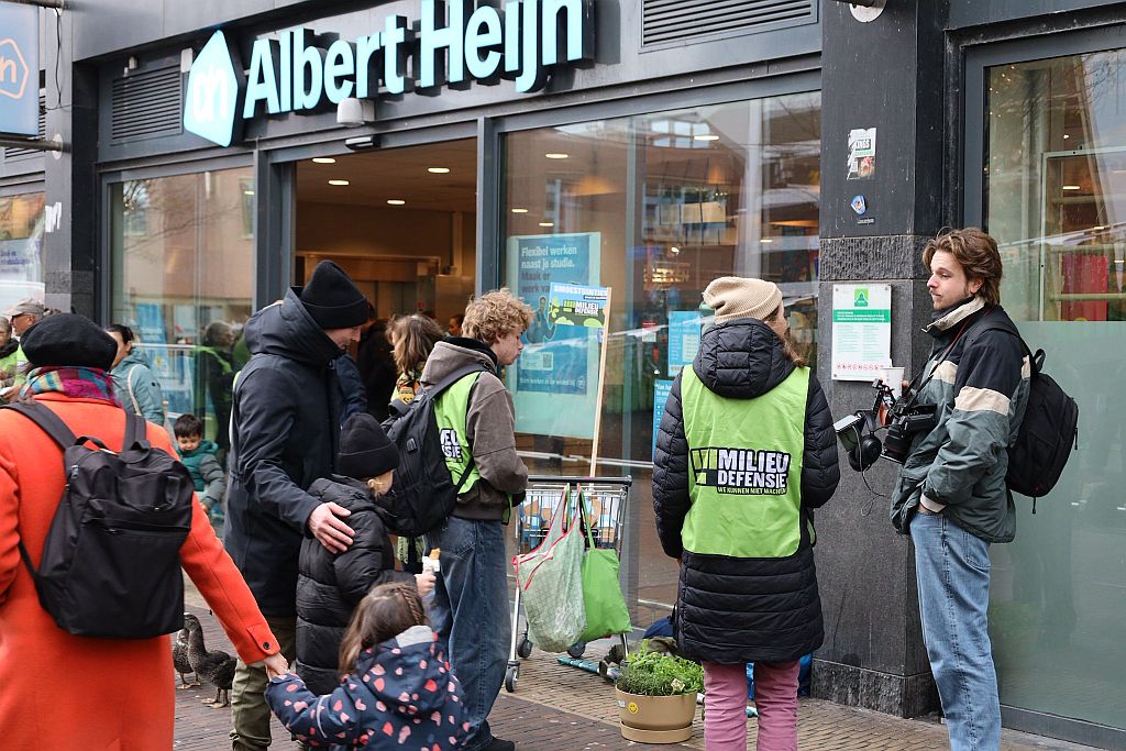 Vrijdag waren mensen van Milieudefensie al even in de winkel geweest om de actie aan te kondigen. Het gesprek met de filiaalhouder verliep in een prettige sfeer, vertelt Harmsen. Op zaterdag werd er nog een pot met een kruidentuintje aangeboden aan de medewerkers van Albert Heijn. Mensen konden tijdens de actie een wens in die pot stoppen voor de supermarktketen.