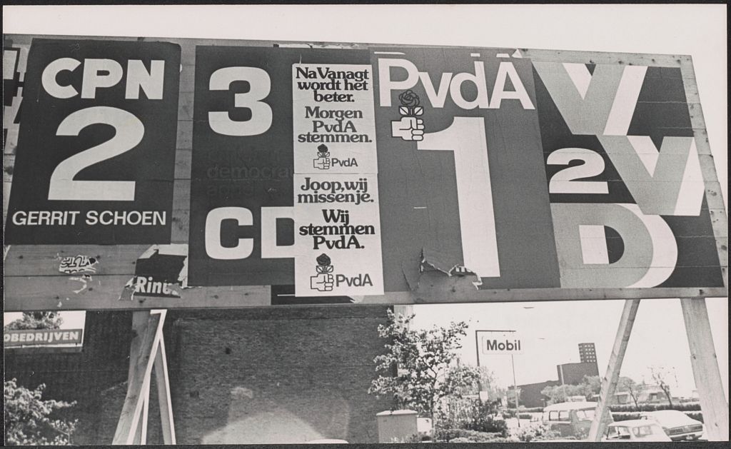 De borden zijn niet meer zoals ze ooit waren. Iedere partij heeft zijn eigen plek en de posters zijn allemaal even groot en keurig uitgelijnd. Dat is eigenlijk al jaren zo, blijkt uit foto’s uit het archief van De Orkaan. In 2017 schreven we al over de gruwelborden van tegenwoordig. (Kijk nog even naar de plaatjes van toen in dat artikel en na de plaatjes van de drie laatste landelijke verkiezingen schrijven we nog effe verder.)