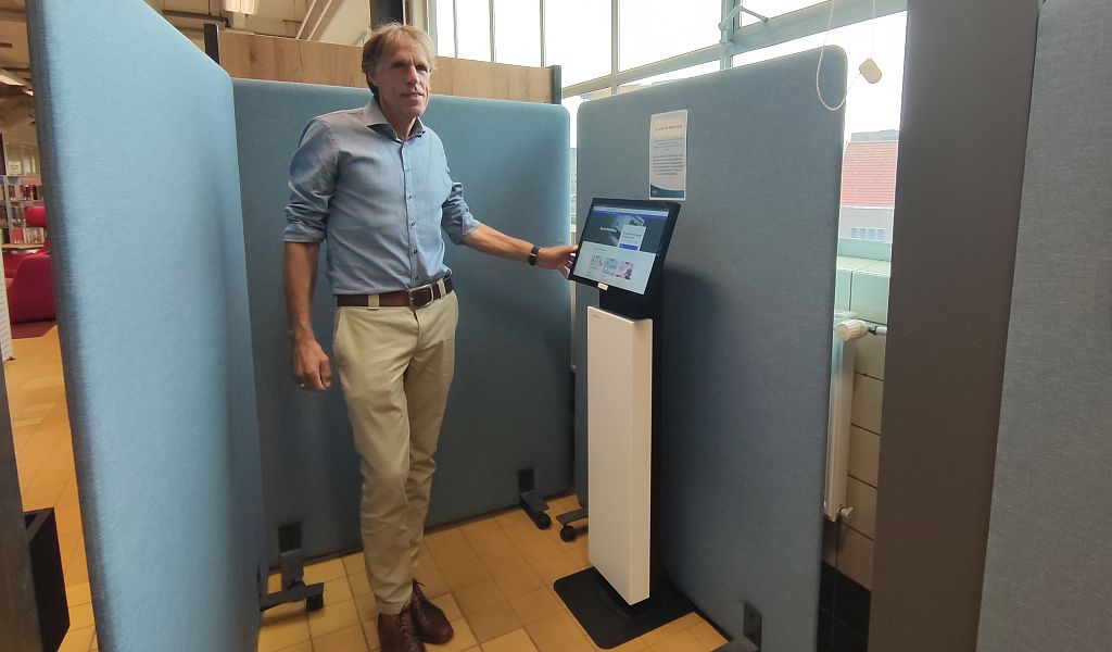 In een speciaal stemhokje kun je de stemwijzer invullen. De partijprogramma’s heeft de bieb niet in huis. Daar heeft Schoneveld bewust voor gekozen: