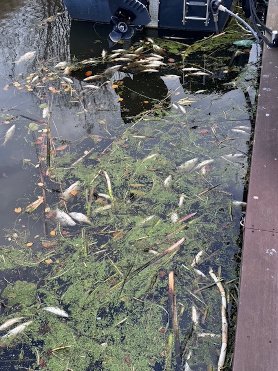 Mail uit Wormer: de sloten zouden vol met dode vissen liggen nadat er gebaggerd is. Meeuwen die op de prooi afgaan laten ze her en der vallen (‘het regent al een week vissen’). En het geeft een enorme stankoverlast volgens Eline Nieuweboer die ons de foto’s stuurde.