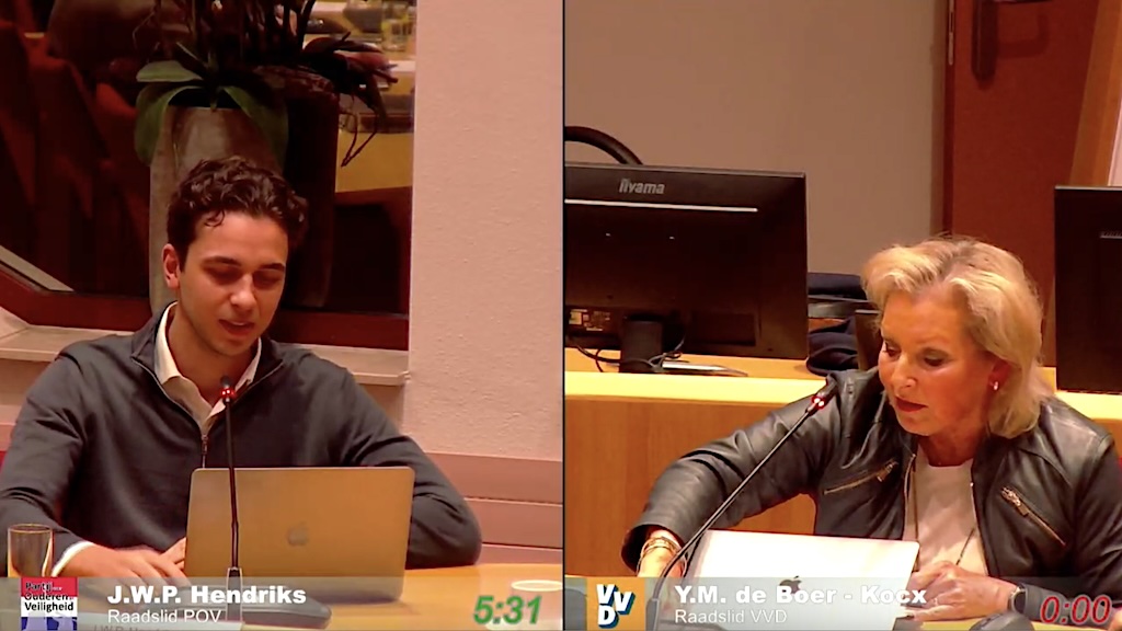 Voordat de burgemeester terugslaat, gaat eerst POV-fractievoorzitter Jacco Hendriks nog met De Boer in debat.