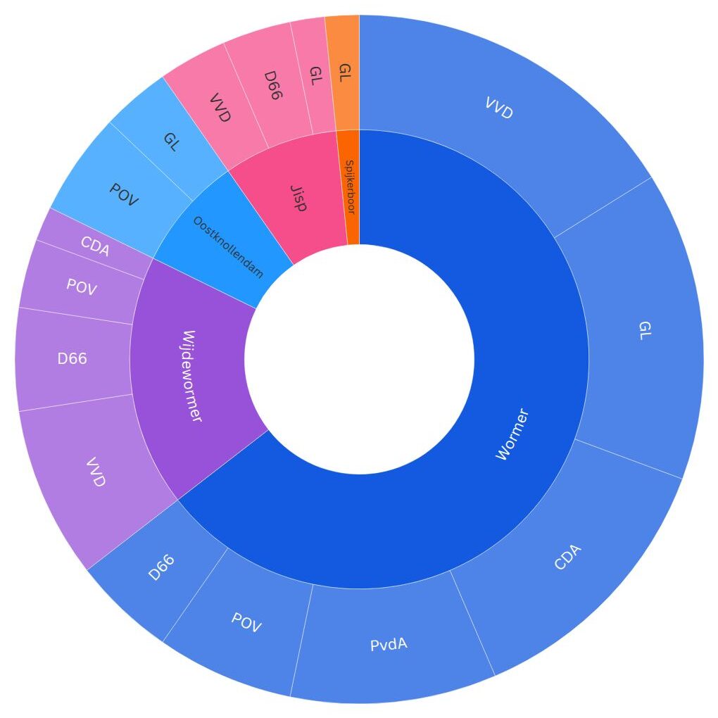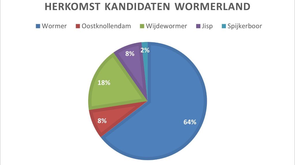 Hoewel ruim 80 procent van de bevolking in Wormer woont, zijn ze goed voor 64 procent van de kandidaten. De dorpen eromheen worden allemaal zo’n twee keer vaker vertegenwoordigd dan de bevolkingssamenstelling zou suggereren.
