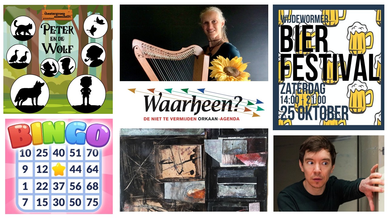 De komende dagen: De Droom van Chagall in de Grote Kerk Oostzaan, Fabian Franciscus in Theater De Kaasfabriek Wormer, Bingo bij speeltuinvereniging Het Blok in Krommenie, The Dutch Eagles in het Zaantheater, Herfstvertelling Zonnemaanbloem in Bouldergym BAZ Zaandam, Bierfestival in 1456 Wijdewormer, Peter en de Wolf in Zaans Cultuurhuis Zaandam, expositie drie Zaanse echtparen in Het Weefhuis Zaandijk en veel meer. Kijk maar in onze uitgaansagenda.