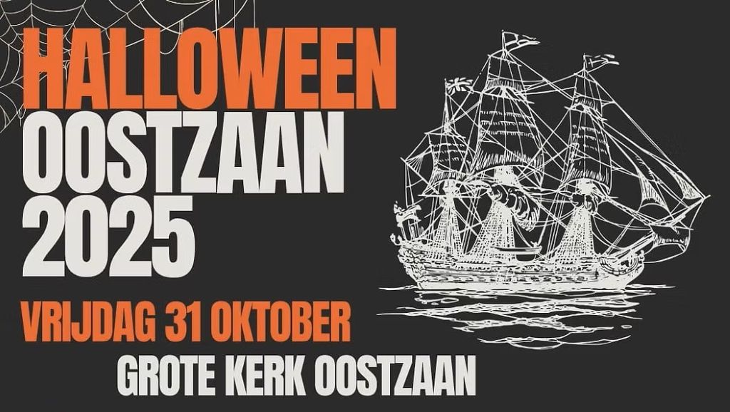 Halloween Oostzaan 2025: De Grote Kerk in Oostzaan staat vrijdag 31 oktober in het teken van Halloween. Een unieke ervaring: de magie van film, de sfeer van Halloween en de bijzondere plek van de kerk. Allereerst is het tijd voor de kinderen: de spetterende Halloween film ‘Piraten van Hiernaast’ wordt op een mega doek onder het dak van de Grote Kerk vertoond. Kom verkleed en laat je verrassen door de ‘Piraten van Hiernaast’. Van 16.00 – 18.30 uur, toegang € 5,00.