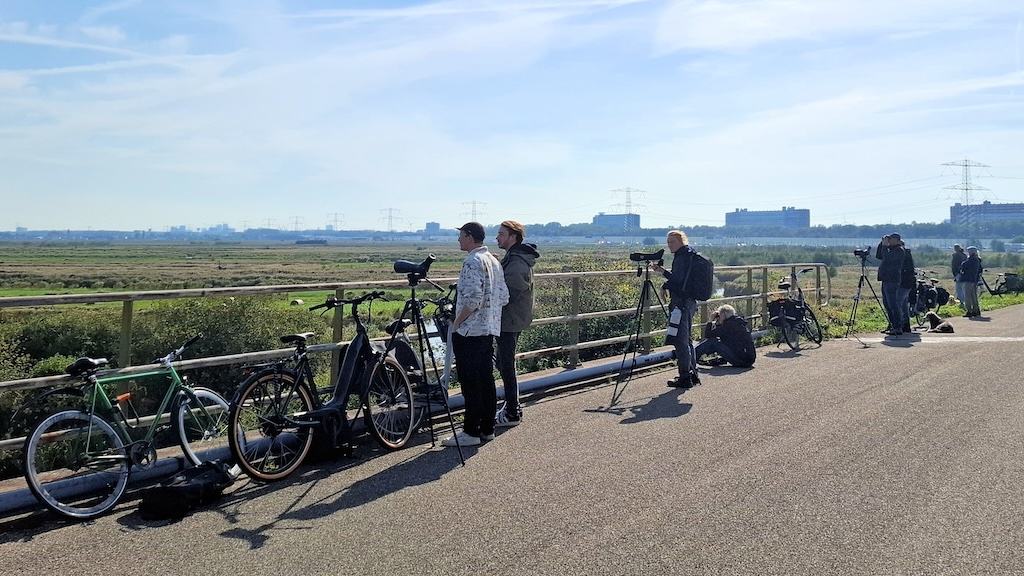 De melding heeft een stroom aan vogelaars op gang gebracht. Vooral bij het spoorviaduct over de Hoornselijn langs de A7 is het een drukte van belang. Tientallen liefhebbers hopen er, gewapend met verrekijkers en telelenzen, de bijzondere soort voor hun lijstje vast te leggen.