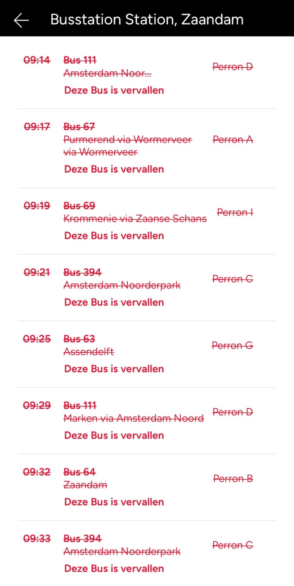 In de praktijk rijden er niet of nauwelijks bussen. Vanaf Station Zaandam vertrekt bijvoorbeeld geen enkele bus. Bus 111 (Oostzaan-Zaandam) rijdt niet. Ook de bussen naar de Zaanse Schans zijn uitgevallen.